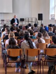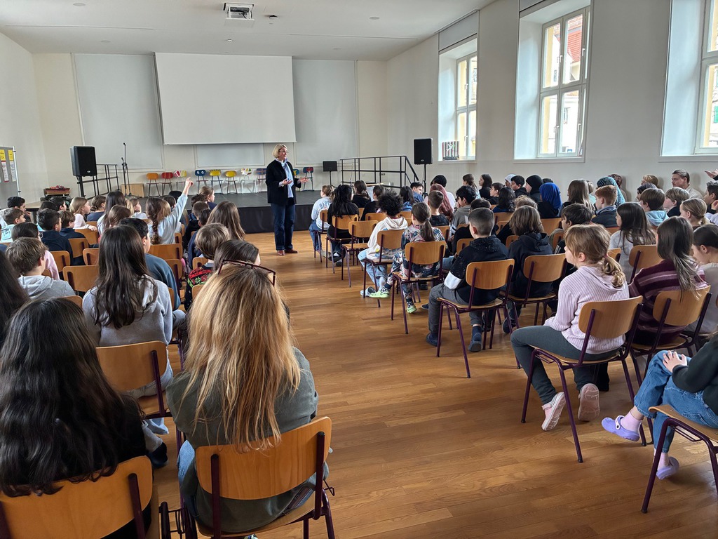 Mit spannenden Einblicken in seinen Berufsalltag fesselte Richter Hohenadl sein junges Publikum so sehr, dass die Kinder gar nicht genug bekommen konnten. Selbst nach sechzig Minuten war das Interesse ungebrochen – freiwillig opferten sie sogar einen Teil ihrer Pause, um noch weitere Fragen stellen zu dürfen.